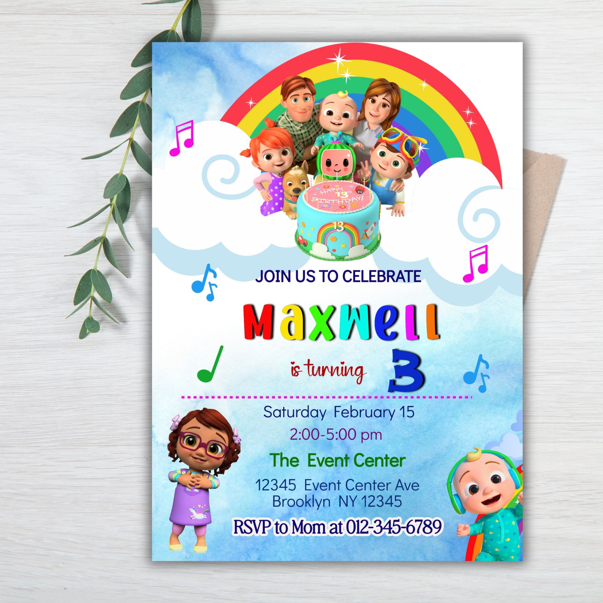 Cocomelon Birthday Invitation, Cocomelon Party Invite, Kids Birthday Party Invite, Cocomelon Digital Birthday Invitationfor kids