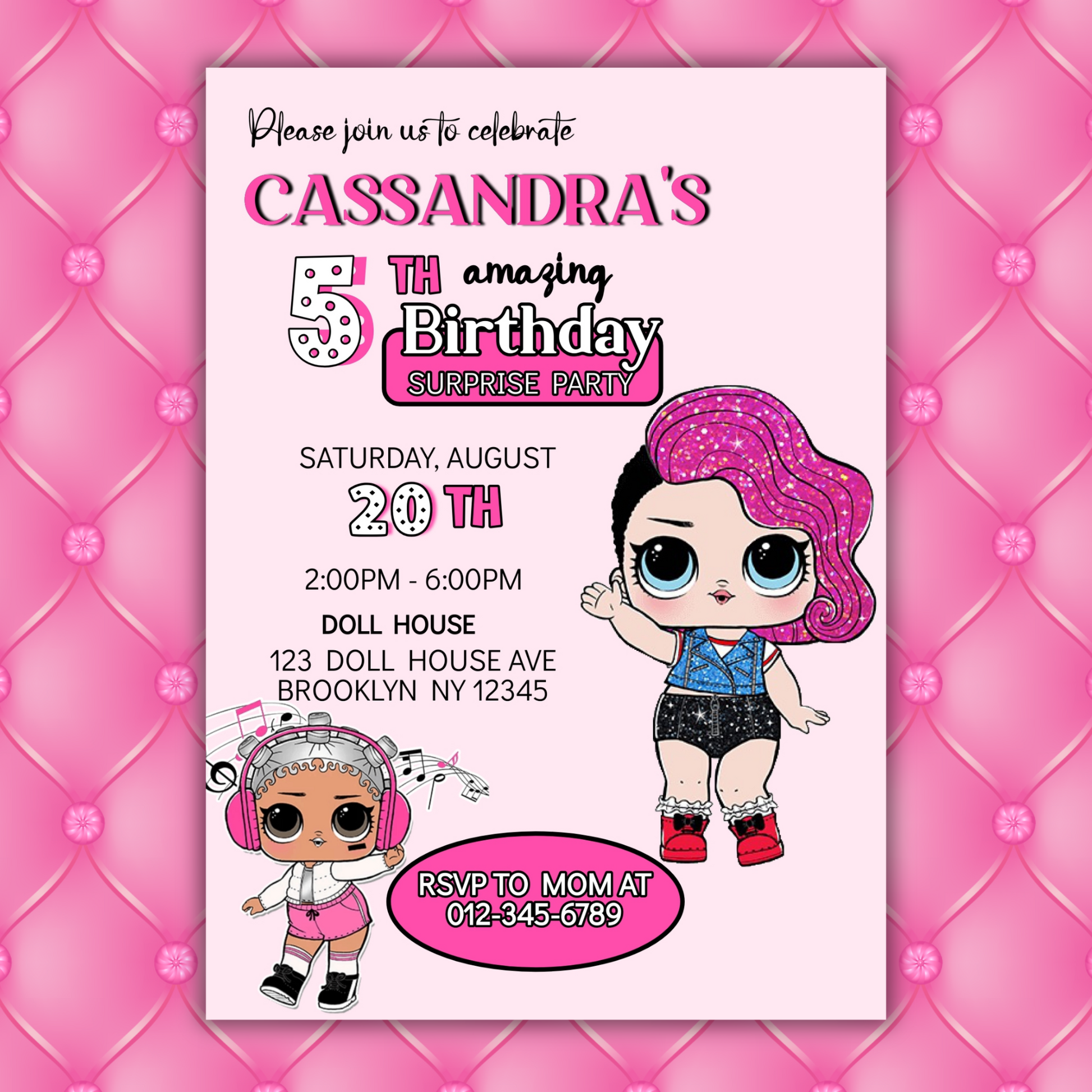 Lol Birthday Digital Invitation, Cute Lol Birthday Cards, Editable Lol Doll Birthday Invitation, Girl Birthday Pink Invitation