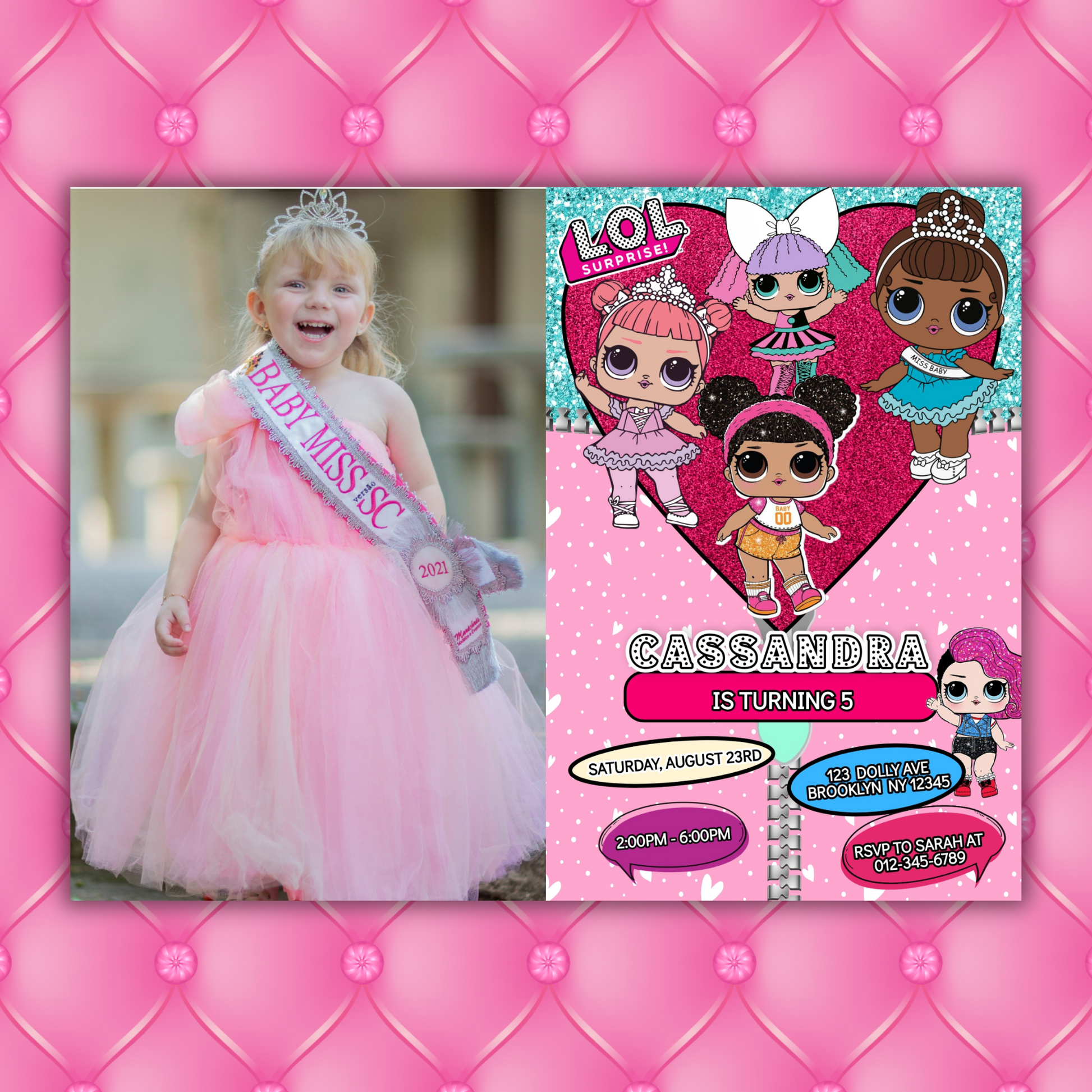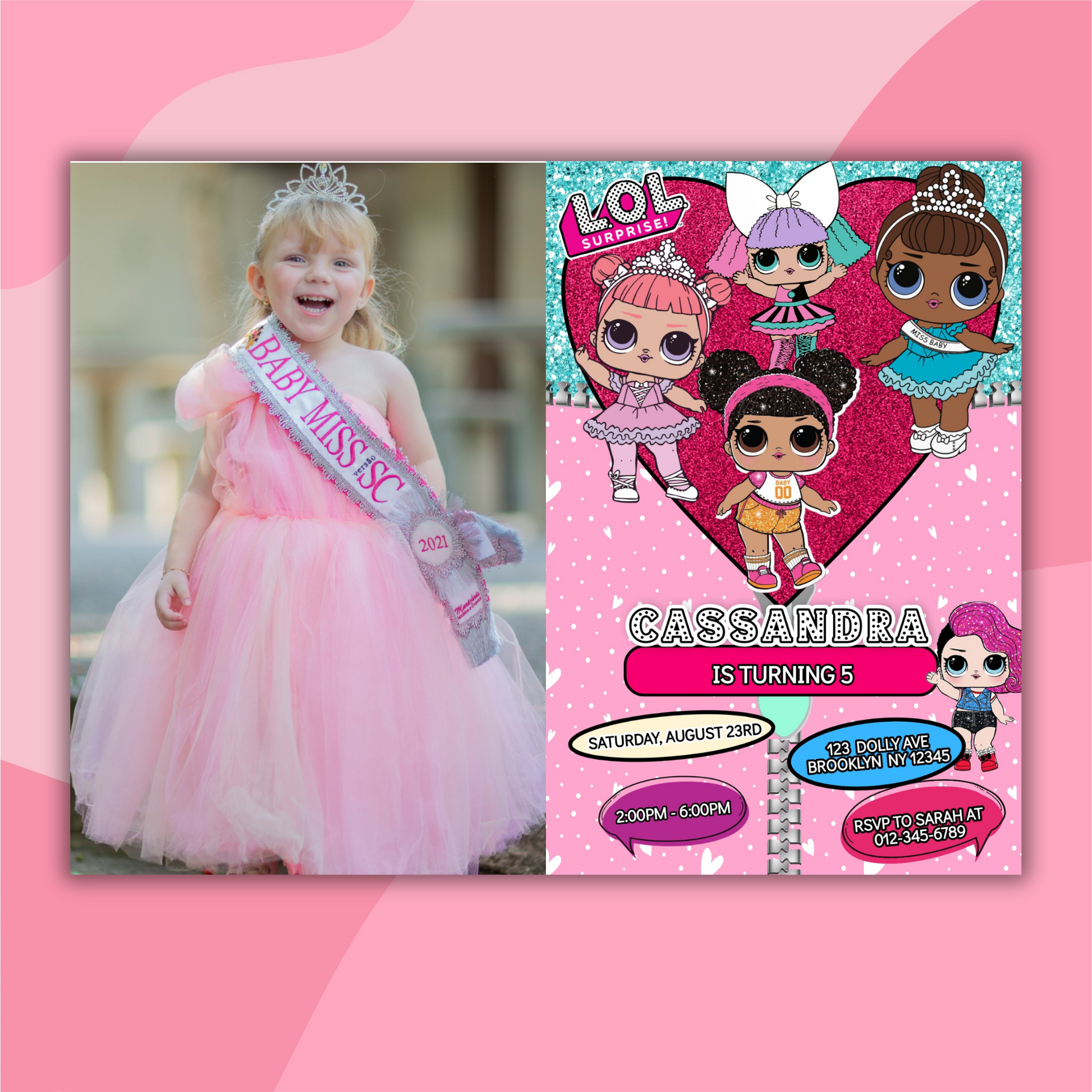 Lol Birthday Photo Digital Invitation, Cute Lol Picture Birthday Cards, Editable Lol Doll Birthday Invitation, Girl Birthday Pink Invitation