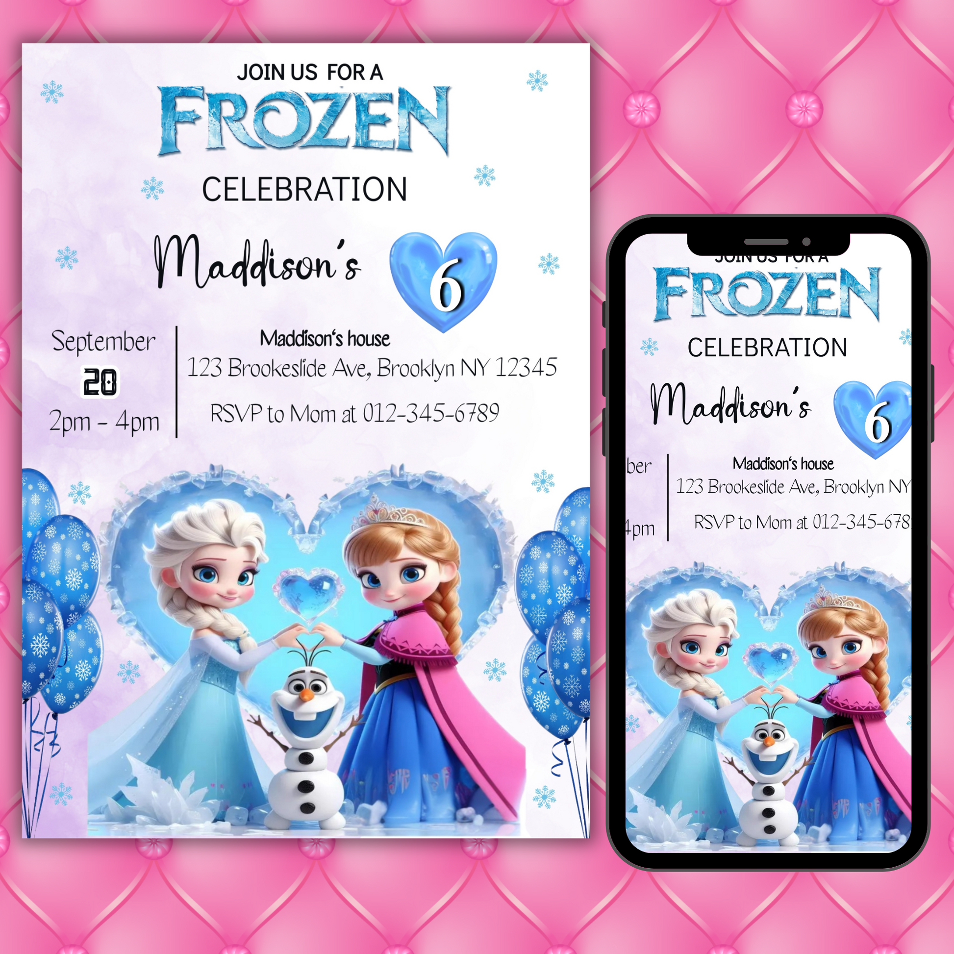 Personalized Disney Frozen Birthday Invitation for Kids | Printable Elsa & Anna Party Invite | Custom Digital Girl's Birthday Card
